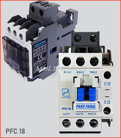 کنتاکتور 18 آمپر سه فاز پارس فانال مدل PFC-18 با ولتاژ کاری 220 ولت AC می باشد.کنتاکتور پارس فانال دارای سه پل با جریان نامی 18A موتوری و 40A روشنایی توان نامی 7/5کیلو وات است.کنتاکتور سه پل (سه فاز) یک کلید الکترو مغناطیسی می باشد که برای کنترل جریان بیش از حد بکار گرفته می شود.سری کنتاکتورهای شرکت P&F در دو ولتاژ 110VAC و 220VAC تولید می شود.